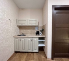 Номер стандарт, 16м2, оснащен: мини-кухней: плита, чайник, вся необходимая посуда.