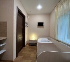 Гостиница понравилась. Есть парковка перед гостиницей. Большой номер с телевизором, раскладным диваном и кухней.