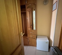 Осталась очень довольна пребыванием в данной гостинице. Идеальное местоположение - тихий уголок в самом центре города, близкое расположение к основным достопримечательным местам, остановкам общественного транспорта, с которым в Калуге нет проблем, рядом множество кафе, ресторанов. Номер был оборудован всем самым необходимым, интерьер скромный, кровать очень удобная, постельное белье прекрасное, туалетные принадлежности всегда были в наличие, душевая кабина удобная и вместительная; интернет работал исправно. Очень порадовало наличие прихожей, в которой стоял мини-холодильник и шкаф с обилием полочек (шкаф был и в комнате), между прихожей и комнатой была дверь, при ее закрытии звук холодильника вообще не был слышен, хотя он и так работал тихо. На столе стояли чашки с блюдцами и чайными ложками, а также стаканы на подносе. Кондиционер спасал от жары. Кулер с водой находился в коридоре, там же стояла гладильная доска с утюгом - доступ круглосуточный. Персонал отеля очень компетентен, добродушен, внимателен, готов ответить на любой вопрос. Мелкие замечания (в кулере почему-то всегда была горячая и теплая вода, отсутствие лифта, светлые шторы) вообще не повлияли на общее впечатление от прекрасных условий проживания. Рекомендую.