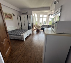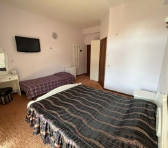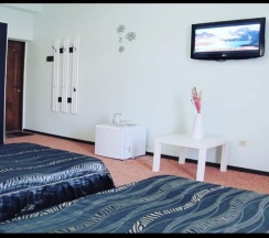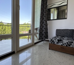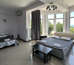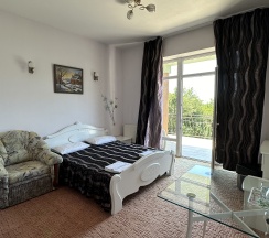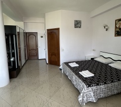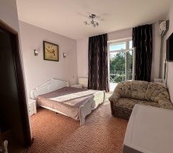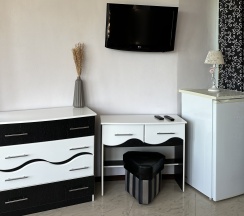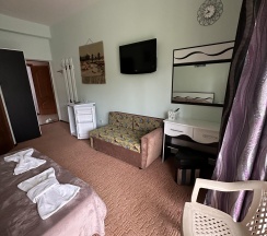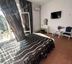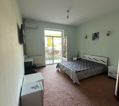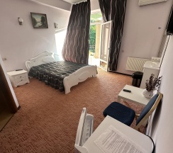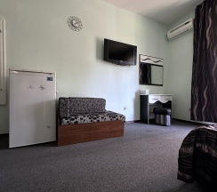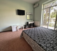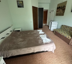 Кроме стандартной комплектации сплит-системой, водяным отоплением, холодильником увеличенного размера для истинных любителей комфорта здесь отдельный уютный балкон, витрина с посудой, микроволновая печь, чайник. В номере большой плазменный телевизор с расширенным пакетом кабельных каналов.
