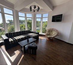 Номера "ЛЮКС" - это пространство без границ - студия размером около 50 кв.м. В номере имеется 2 кровати KING-Size. Номер вмещает до 6 человек. Возможно, установка одного дополнительного места.
