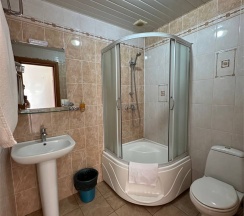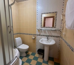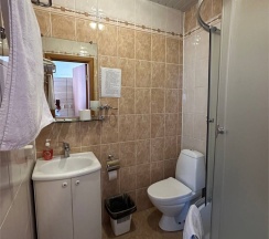 Остались довольны номером: чисто, уютно. Порадовал полный комплект на гостя: гель, шампунь, мыло, зубной набор и набор ватных дисков и ушных палочек. Также были предоставлены вафельные халаты, одноразовые тапочки и 4 полотенца (по 2 на гостя).