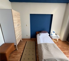 Везде очень чисто, в комнате уютно, приятный вид из окна, толстые стены (соседей не слышно). Правда, двери в комнате тонкие, слышно, если в коридоре ходят и разговаривают.