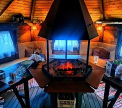 Представьте себе такую картину: вы сидите в уютной деревянной беседочке прямо на берегу шумливой горной речушки 🌊🚬 Рядом журчит вода, пахнет свежестью леса, слышится птичий щебет... А тут еще каминный огонь весело потрескивает и согревает душу теплом ✨ Такое место создано специально для того, чтобы отвлечься от повседневных забот и зарядиться энергией природы!