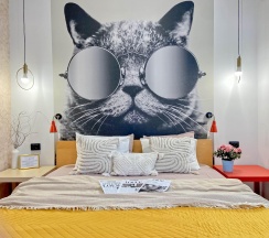 Семейный дизайнерский номер отличается большой площадью 25 кв. м., большой кроватью King Size Bed и дополнительным двухспальным диванчиком, что позволит комфортно разместиться семье с детьми или небольшой компании друзей.