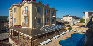 Отличные отзывы все верные, особенно это важно для вышестоящего корпуса, полностью соглашусь, очень комфортно разместились, благодаря радушным хозяевам, есть и парковка для гостей, и отличный вид с 3 го этажа, и весьма просторная комната, удобные беседки, и бассейн с детской площадки. Отличный гостевой дом, на холме стоит, удобно наблюдать и за долиной и морем, минусов несколько, курилка расположена так что всё очарование вида можно наблюдать только из окна, так как открыть невозможно, вечно кто-то дымит, а дым несёт на здание, с её расположением необходимо что-то делать, и второй минус это печальная вода, сантехника из-за неё не живёт. А так ещё бы сюда вернулся.