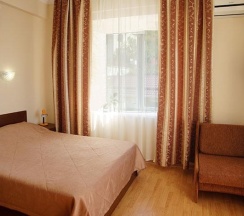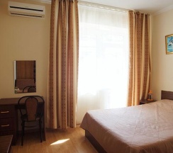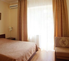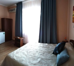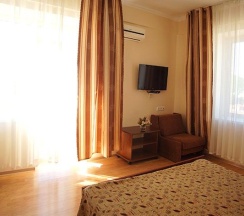 2-х местная комната с балконом, с видом на море и горы – уютная комната со всеми удобствами, собственный санузел с душем. Вмещает 3 человека: доступно одно дополнительное место – кресло-кровать. Вся необходимая для комфортного проживания мебель: удобная двуспальная кровать, шкаф, тумбочки, журнальный столик, комод, зеркало, а также белье и полотенца.