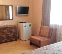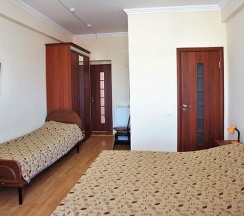 3-х местная комната с балконом, с видом на горы и море – уютная комната со всеми удобствами, собственный санузел с душем. Вмещает 4 человека: доступно одно дополнительное место – кресло-кровать. Вся необходимая для комфортного проживания мебель: удобная двуспальная кровать, односпальная кровать, шкаф, тумбочки, журнальный столик, комод, зеркало, а также белье и полотенца.