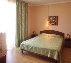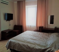 Большая, светлая комната улучшенной планировки со всеми удобствами, собственный санузел с душем. Вмещает 3 человека: доступно одно дополнительное место – кресло-кровать. Вся необходимая для комфортного проживания мебель: удобная двуспальная кровать, шкаф, тумбочки, журнальный столик, комод, зеркало, а также белье и полотенца.