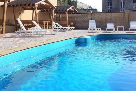 Гостиница очень чистая, уютная. Кравать мягкая, бельё чистое вкустно пахнет. Дают очень много полотенец это большой + в номере есть х/о, телевизор, кондиционер. Так же есть бассейн очень хороший как для детей так и для взрослых, бассейн чистят каждое утро сама видела. Беседки чистые и уютные. До море 10 мин. Рекомендую.