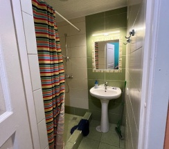 Не понравилось: Разочаровала моль выпавшая из лампы над кроватью, после сложно было уснуть. И почти прозрачное стекло в ванную комнату создавало дискомфорт. Я накидывала шторку на дверь ванной (благо расположение окна и двери позволяло), чтобы было комфортно мыться и ходить в туалет.