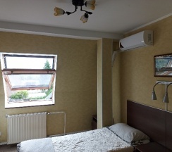 Понравилось: Остановились с 03.01.22-04.01.22 в двухместном номере с собственной ванной комнатой и туалетом. Кровать удобная, номер опрятный, есть шкаф, стол, стул, диванчик, холодильник, полотенца. На нижнем этаже есть кухня, где можно приготовить себе еду и покушать. Есть парковка.