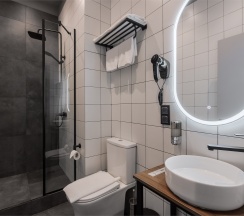 Номера категории Улучшенный обладают современным дизайном и прекрасно подходят как для туристов, так и для бизнес-путешественников. Интерьер номера выполнен в современном стиле с эргономичной планировкой и оборудован всем необходимым для идеального отдыха. В номере имеется место для хранения вещей, ванная комната с душевой зоной (тропический душ и ручной душ), туалетные принадлежности в ванной комнате - жидкое мыло для рук, гель для душа, шампунь-кондиционер, зубной набор.
