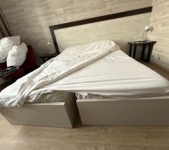 Останавливались с мужем на два дня в номере Люкс. Большой просторный номер с диваном и панорамными окнами. Кровать очень удобная и большая, у мужа рост почти 2 метра - ноги не свисали с кровати, он это заценил!