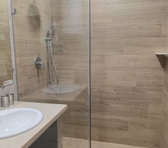 В душевой имеется теплый пол, но он даже не пригодился, на улице 30-градусная жара, спасались кондиционером. Всё необходимое в номере было: полотенца, халаты, мыльно рыльное, тапочки. Забыли с собой щетки зубные, девочки на ресепшене сразу же принесли.