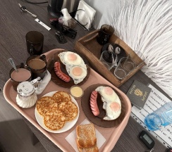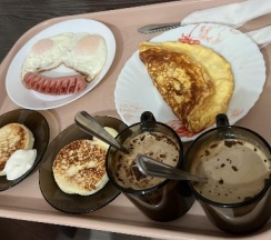 Приехали отдыхать в Новосибирск и выбрали отель Корона. Отель был забронирован на 15 июля, но по стечению обстоятельств мы приехали раньше, девушка администратор решила вопрос и встретила нас ночью ( провела к номеру, все рассказала и разъяснила) оплатили мы не полные сутки, утром принесли завтрак в номер. ( каша овсяная, яичница с сосиской, сырники и какао)