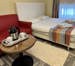 Хорошая уютная гостиница. В номере чисто, белье и полотенца белоснежные. В номере были одноразовые тапочки, туалетные принадлежности. Завтрак вкусный, питательный. Быстрый трансфер. Из минуса- хорошая слышимость, что с улицы, что с коридора.