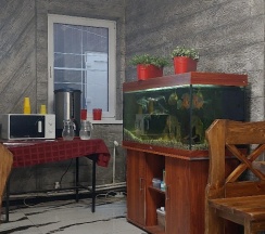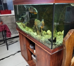 Приятная обстановка в кафе на 1 этаже музыка и аквариум с рыбками