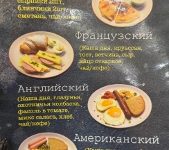 Завтраки очень хорошие, одного нам хватало на двоих. Заказать можно с вечера желаемый на выбор из 4х вариантов.