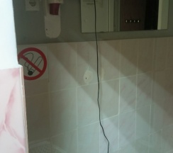 Огромный минус, что ванная комната находится на другом этаже. Кондиционер и фены грязные.