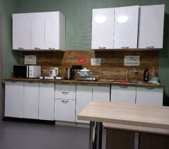 Помимо этого, на 2-ом этаже 2-го корпуса есть холодильник, микроволновка, кулер и чайник.