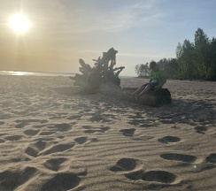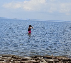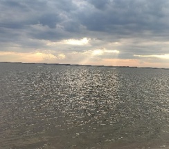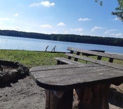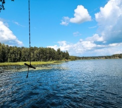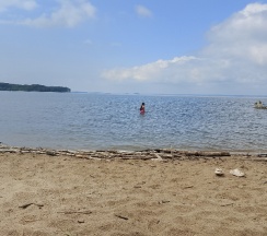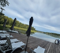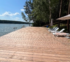 Природа шикарная! Воздух чистейший, нет комаров, и мошек. Видно что база в стадии развития, очень красивый проход к пляжной зоне.Пляжная зона выложена из доски,стоят шезлонги. Из минусов пляжа нет,спуск в воду по лестнице,где не видна дна. Вокруг водоросли, с детьми там делать нечего.Если позагорать, и полюбоваться природой норм.База бывший пионерский лагерь, ремонт средний, комнаты маленькие, не очень чисто.Санузел тоже в среднем состоянии, грязновато.В целом впечатления остались хорошие, возможно приедем ещё.