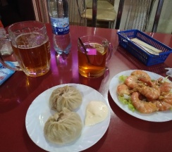 Заказал 2 буузы и креветки. Буззы свежие, сочные! А креветки просто огонь, вкуснотища, большие) Хорошее кафе, рекомендую ребята!