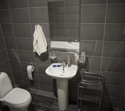 Не понравилось: Разложили диван (третье спальное место), и в комнате невозможно ходить. В ванной комнате нет ни душевой кабины, ни шторки. Яичницу недожаривают.