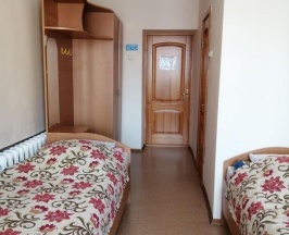 В номере: две односпальные кровати. Удобства общие, на этаже.