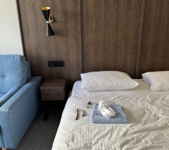 Отличный отель, красивый, ухоженный, номера очень чистые. Бассейн живописный, тоже чистый и приятный, вода теплая. Завтраки вкусные, качественная еда) искренний отзыв! Рекомендую)