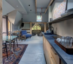 Всё красиво, всё уютно. Очень удобная кровать и красивый вид из окна. Понравилось дистанционное заселение и что все вопросы можно решить в мессенджере. Закрывающие документы для бухгалтерии предоставили при выезде.