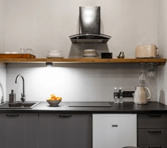 Очень хорошие апарты! Номер чистый, все самое необходимое есть : в номере хорошая кухонная техника, телевизор на Алисе, что очень удобно, для каждого гостя есть мыльные принадлежности, тапочки.