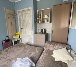 Квартира с нормальным ремонтом. Диван, кровать, всё есть. Трое человек вполне могут уместиться. Кухонька небольшая, но тоже всё необходимое имеется. В. санузле чисто.