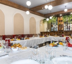 Отличный комплекс! Нам очень понравилась кухня, все было очень вкусно - салаты, горячее, напитки! Отличный банкетный зал - уютно, чисто. Приветливые администраторы - помогли найти место для парковки, проводили до зала. И замечательные просторные жаркие баньки!