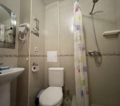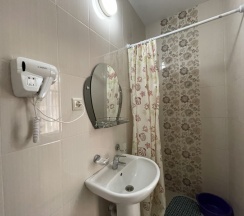 Четырехместный номер в полуцокольном этаже, напротив общей кухни, окна под верхом. Просторный номер с собственной ванной комнатой.