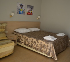 Однокомнатный номер на 2 или 3 этаже с балконом, окнами на улицу, общей площадью 18 м2, в котором расположены одна двухспальная кровать 200х160 и дополнительное спальное место раскладное кресло 200х80.