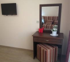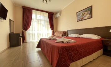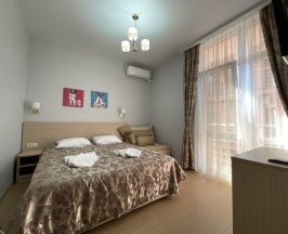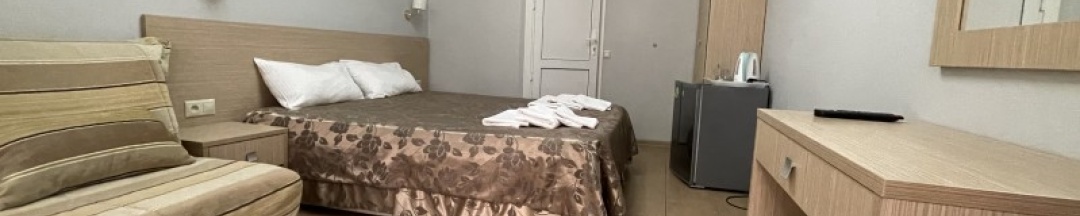 Однокомнатный номер с балконом на 3 или 4 этаже, с прекрасным видом на горы.В номере два раздельных бокс-спринга 200х80 или один двухместный 200х160 и диван 200х160.