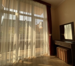 Понравилось: В номере уютно, чисто, большие окна. У нас был номер 7, балкон на дорогу, а с левой стороны открывался красивый вид(на фото). Учли наше пожелание и предоставили номер повыше и с видом, за это большое спасибо сотрудникам: доброжелательные и приветливые) Все необходимое в доступе: чайник, холодильник в номере, тумбочки, шкаф, сейф и тп. Море в пяти минутах через парк)
