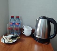 Стильно, уютно и чисто!!! Гель для душа, шампунь и зубная щётка с пастой все есть! Фена не оказалось в номере, но по просьбе тут же принесли. В номере есть чайник, чашки ,чай, кофе, сахар. Прекрасный вид с балкона открывается на город и на Каспийское море.