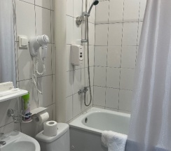 По чистоте и работе сантехники нареканий нет. Мелкий недочёт – фены с неудобными короткими проводами-пружинками.