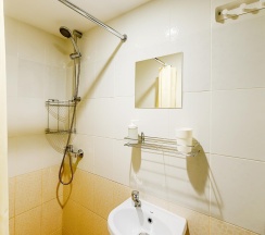 В студии: собственный душ и туалет, мини-кухня, холодильник, микроволновая печь, электрический чайник, посуда, ТВ и WI-FI, постельное белье и полотенца, фен. Стиральная машина, утюг и гладильные принадлежности в общем доступе.