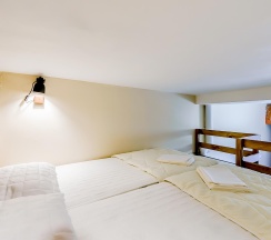 В апартаментах два спальных места на втором уровне и диван-кровать на первом уровне.