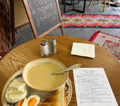 Вкусные завтраки. Готовят хорошо, все свежее, очень большие порции. Пробовали яичницу, овсяную и абрикосовую каши, сырники - порции большие, можно наесться одним блюдом. Хороший кофе