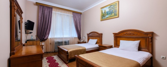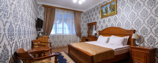 Номера класса "Комфорт" гостиницы Метрополь площадью от 30 до 45 квадратных метров рассчитаны на комфортное проживание 2х человек. Мы предлагаем номера данного класса семейным парам, приехавшим в Махачкалу для работы или отдыха. Номера состоят из комнаты и веранды. В каждом номере одна двуспальная кровать, чайный набор, мебель высокого класса, предрасполагающая как к отдыху, так и к работе.