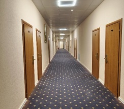 Нашу группу привезли сюда в рамках экскурсионного тура. Не настраивались ни на что хорошее. Но входя в номер 508 (он у нас был 3-местный), ахнули по очереди: кровати деревянные красивые, много места, большая ванная комната.