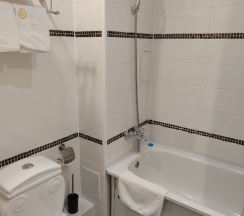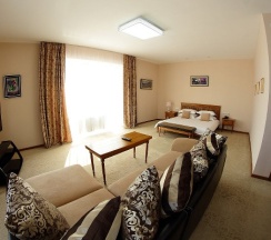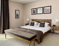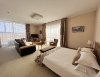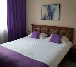 Большая удобная кровать, чистейший номер,шикарные плотные шторы ,все необходимые принадлежности, кофе/чай, чайник и красивая посуда! Ванна и унитаз царские( есть с чем сравнить )+ очень разнообразные завтраки по удобному Вам времени! Один минус обои в некоторых местах отошли...