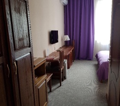 Хорошая, чистая гостинка. Интерьер нашего номера - восторг. Было 2 односпальные кровати. Они большие, легко можно уместиться в двоем на одном. Сан.узел огонь.