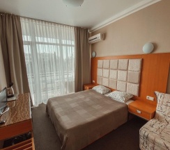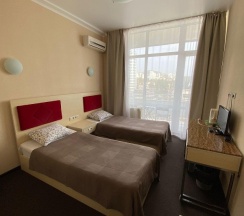Отличный отель. Жили в номере стандарт с видом на море. Всë есть:посуда, чайник, фен, сейф, утюг. В номере уборка каждый день. Очень удобное расположение, до набережной и парка 5 минут пешком. Всë понравилось, приедем ещё.