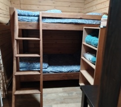 Номера чистые, есть холодильник, индукционная плита, микроволновка, чайник. Кровать у нас была двухъярусная, но по ширине как двухспальная кровать.