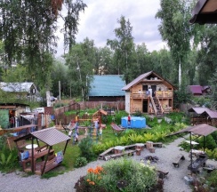 Не большая, но ухоженная территория. Отличная хозяйка. Банька супер... Магазин рядом (есть сетевой "Монетка", но до него далековато пешком, на машине быстрее). А так всё очень понравилось. Останавливайтесь, не пожалеете. Самое главное- ТИХО. Дискотек на территории нет, да и музыку громко никто не слушает (хозяйка следит за этим).... Самое то для спокойного отдыха, тем более с детьми.